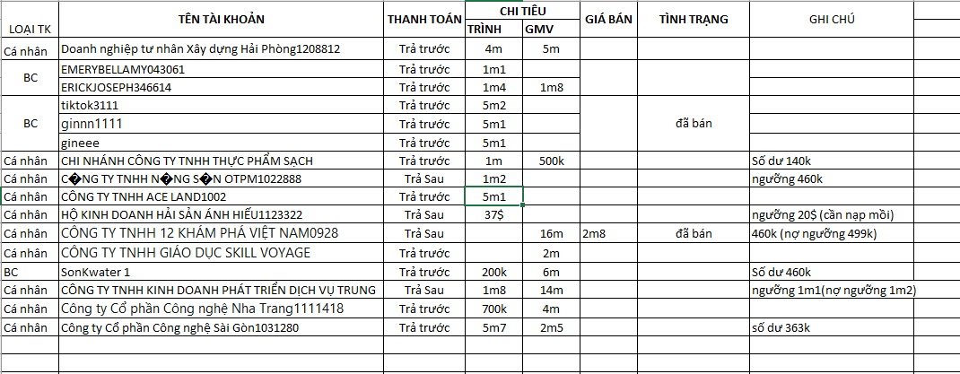 ...124 mua 2 TKQC cá nhân trả trước đã chi ... với giá 3.200.000đ